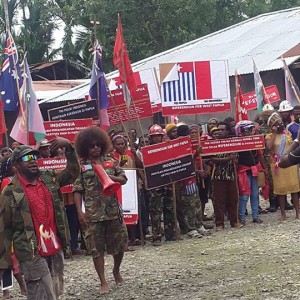 HomeFully armed Indoensian police confront peaceful West Papuans in Port Numbay (Jayapura) supporting West Papua joining the MSG through the ULMWP40
