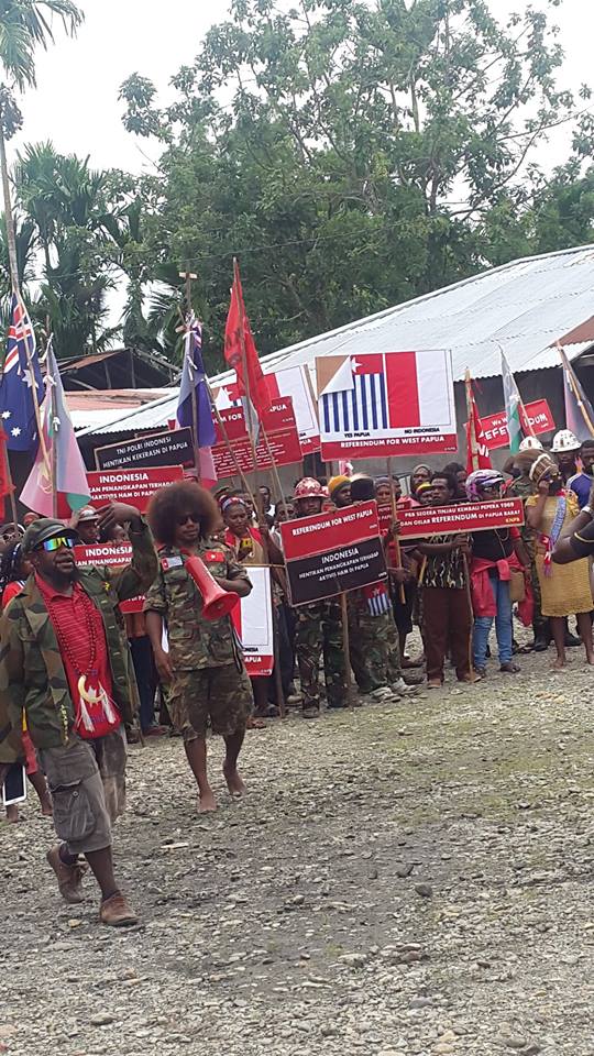 Fully armed Indoensian police confront peaceful West Papuans in Port Numbay (Jayapura) supporting West Papua joining the MSG through the ULMWP40