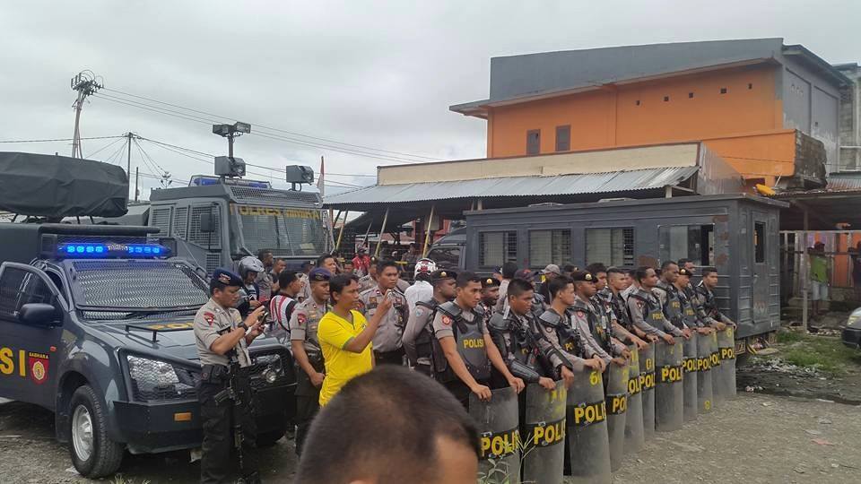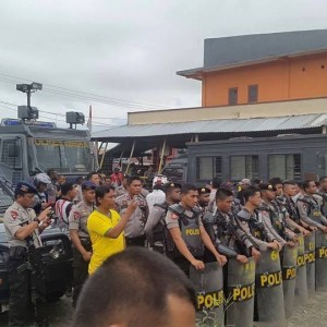 Fully armed Indoensian police confront peaceful West Papuans in Port Numbay (Jayapura) supporting West Papua joining the MSG through the ULMWP4