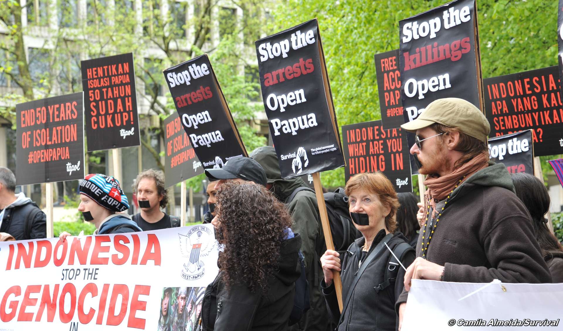 Dozens of demonstrators gathered outside Indonesian embassies in London, Paris and other cities today to call for an end to West Papua’s 50 years of isolation.