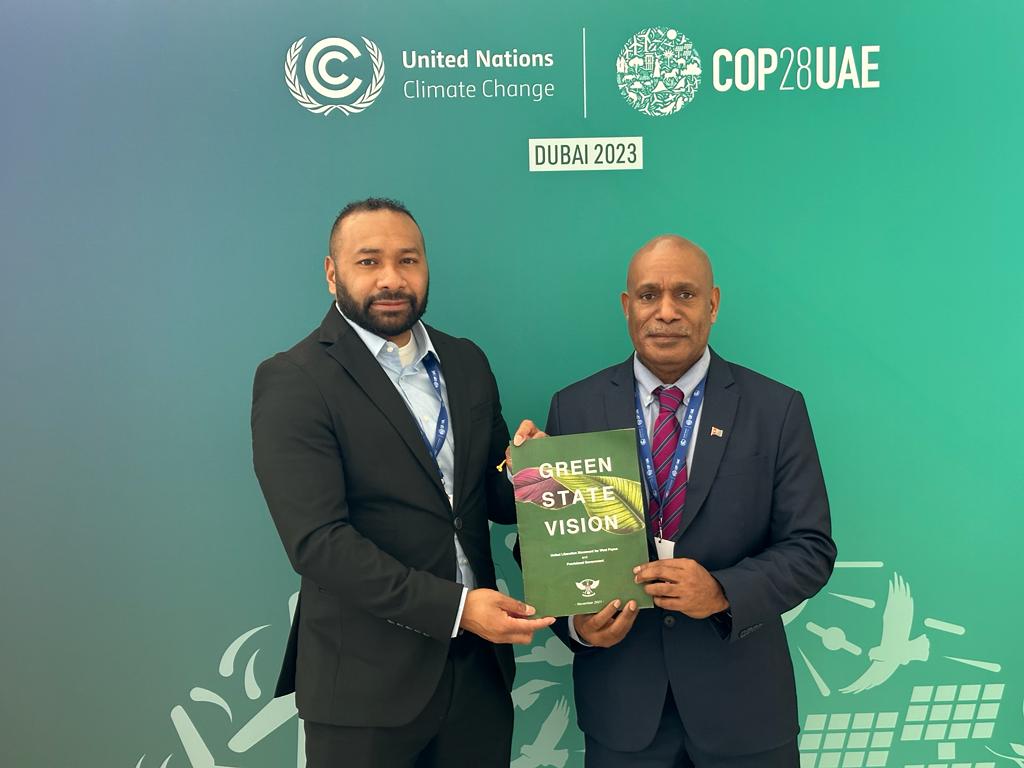 GB Sign in 0:15 / 3:30 ULMWP Promoting West Papua Green State Vision to offer a (true) Climate Solution at COP28 in Dubai