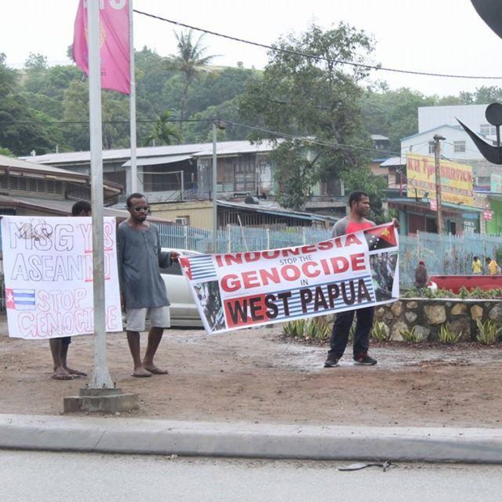 Some more photos from the protests held in Port Moresby, Papua New Guinea yesterday at the arrival of the Indonesian President.