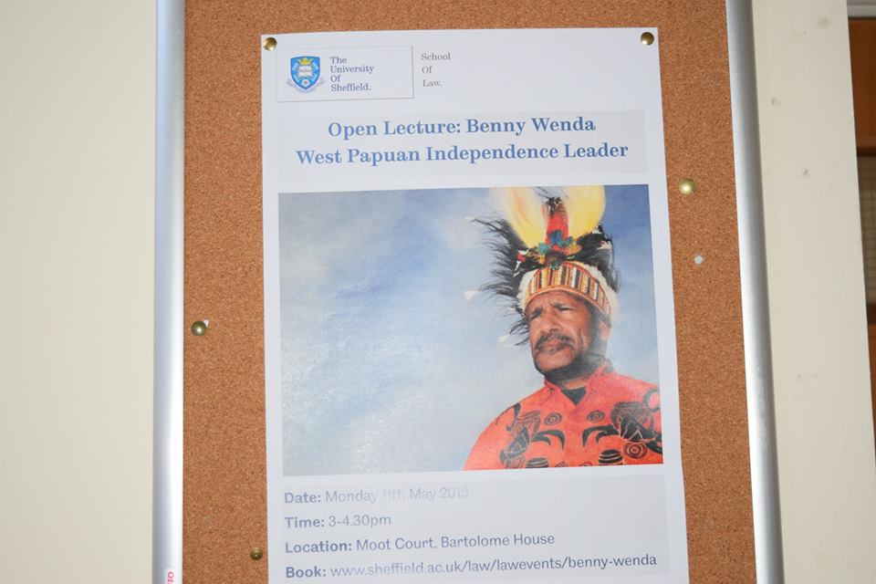 On 11th May Benny Wenda gave a talk at the University of Sheffield School of Law in the United Kingdom. He talked about how the case for West Papua was very strong under international law, after West Papua was illegally occupied by Indonesia without the consent of the West Papuan people.