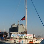 Free West Papua protest in front of a warship. Photo: Freedom Flotilla for West Papua